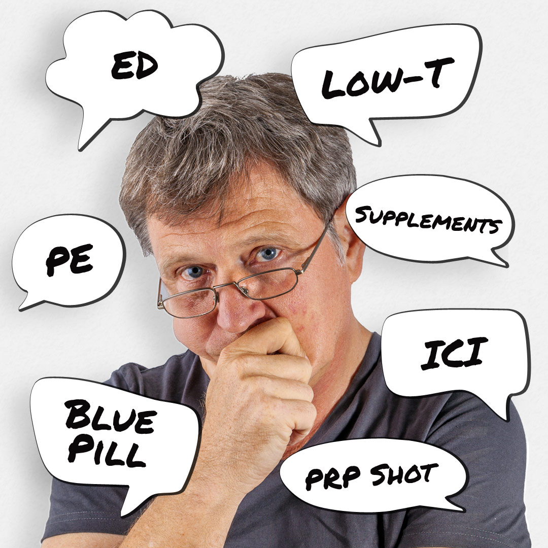 “Are you hearing ads on the radio for the Little Blue Pill – with a sexy voice? Promises for the magic elixir Testosterone? ED solutions by mail? Are you confused about all the options? Call Dr G at 423-414-9400 for a one-on-one consultation. Your underlying medical conditions can have an impact on the results of any therapy. Do you really want to trust your health to a 1-800 number? Come in for a discreet private appointment here in Chattanooga. Hormone therapy, PRP shots, ICI and oral medications at reasonable prices. Aging does not mean an end to your sex life! Call to take charge of your quality of life!”